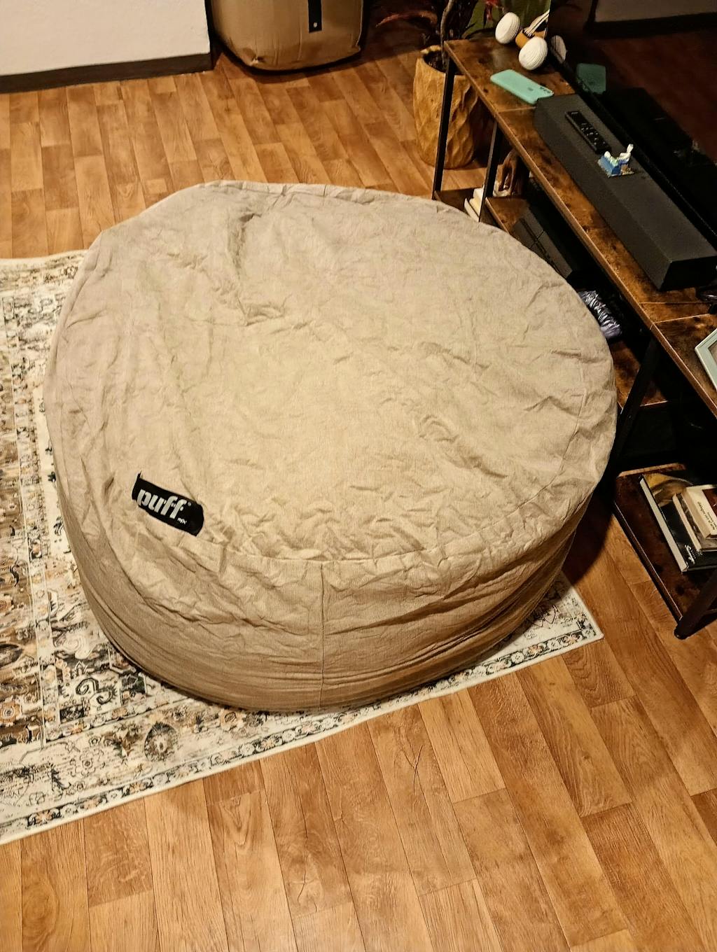 Como Puff mide 100 cm de Diámetro y 50 cm de altura aproximadamente, ideal para ver la tele, leer o jugar videojuegos. Es muy funcional ya que además de ser Puff cuenta con una cama tamaño matrimonial en su interior que mide 180 cm x 140 cm aproximadamente lo cual es de mucha utilidad para cuando se tienen invitados o para cualquier eventualidad.